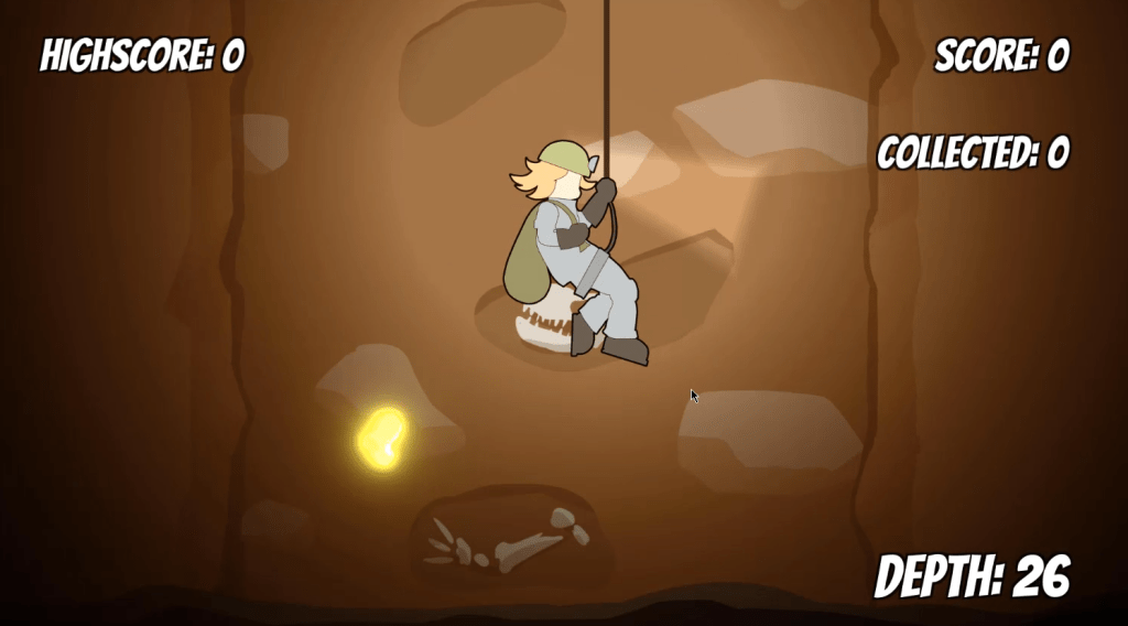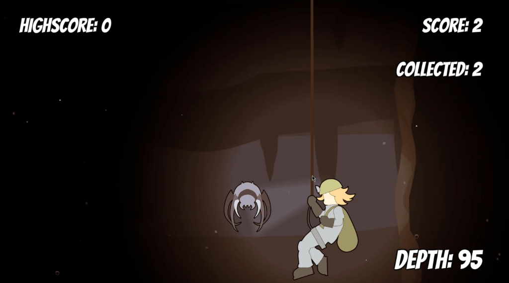 Space-bar to start descending. You’ll start going up when you get the first gold. So when that happens, try to collect as many as you can on the way up. Make sure to avoid spiders as the take the gold away from you.